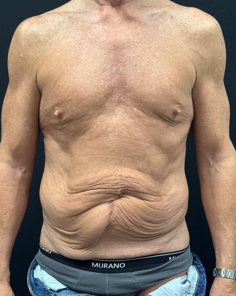 65 – year- old man shown 3 months after full abdominoplasty with 360 degree liposuction and umbilical reconstruction