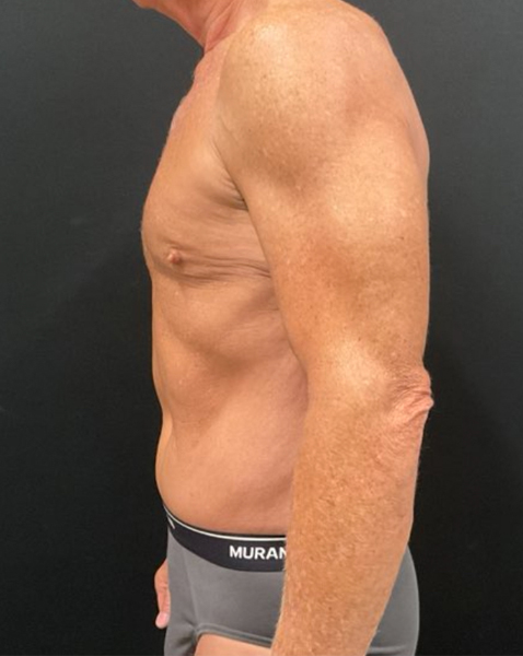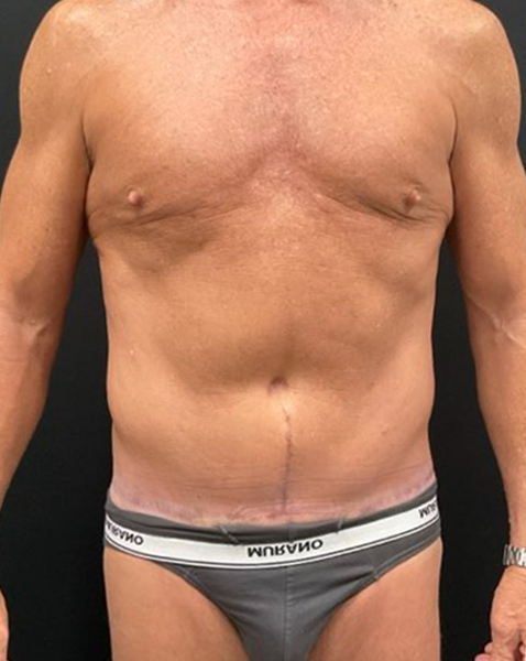 65 – year- old man shown 6 months after full abdominoplasty with 360 degree liposuction and umbilical reconstruction