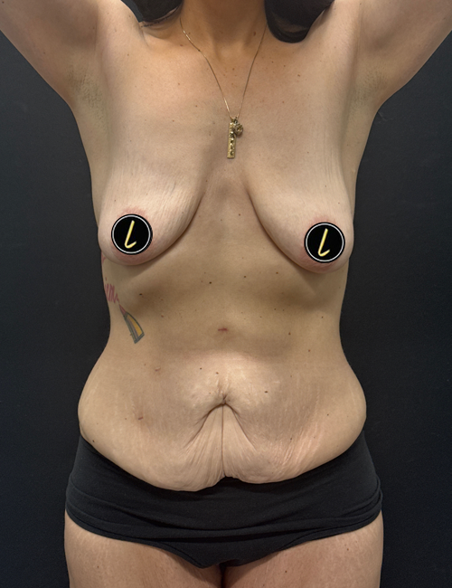 39 year old female shown 1 year after full abdominoplasty and bilateral mastopexy (breast lift)