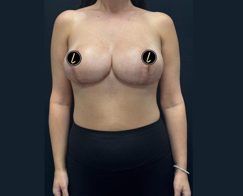 Shown is a woman in her 40s 3 months after bilateral breast reduction