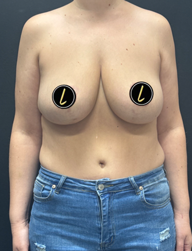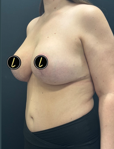 41 year old female is shown 3 months after removal of bilateral implants and Mastopexy (breast lift)