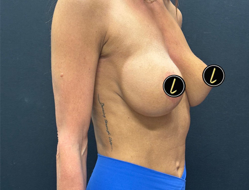 51 year old 1.5 years after bilateral implant exchange to moderate profile plus 415 cc Sientra implants