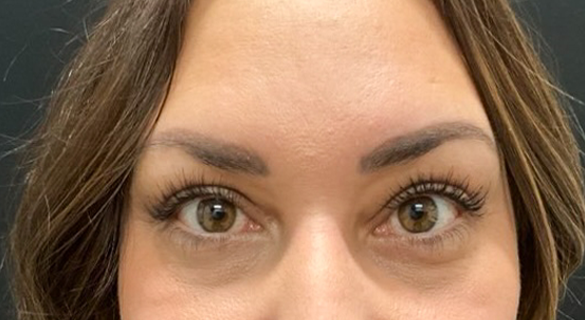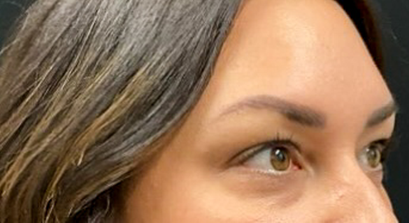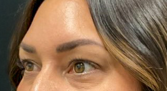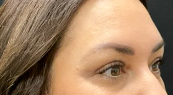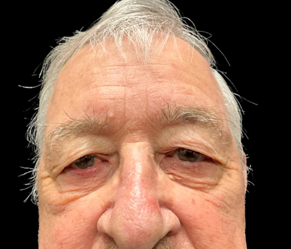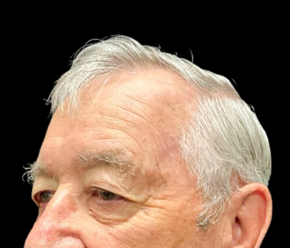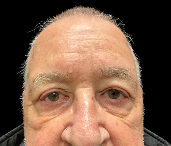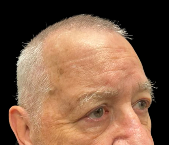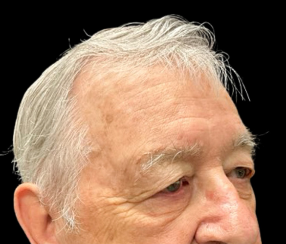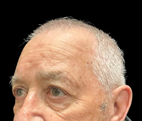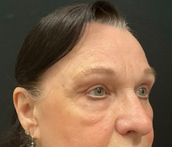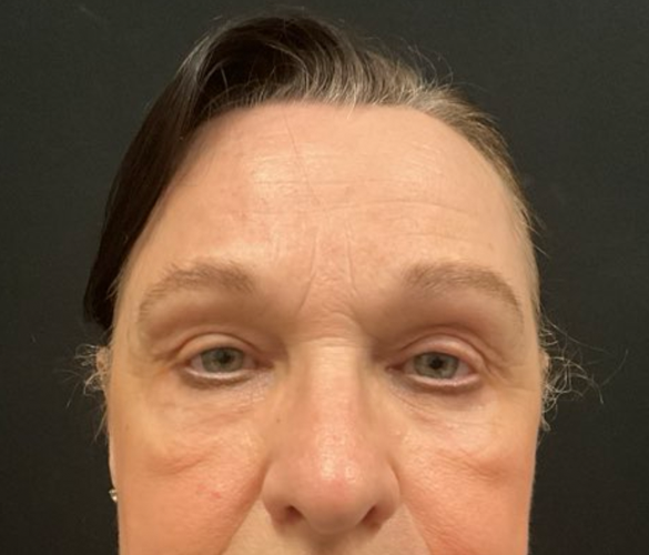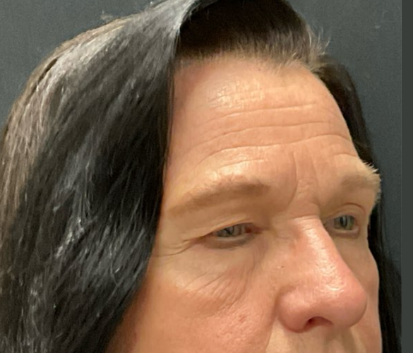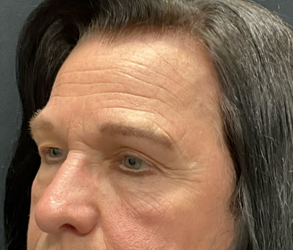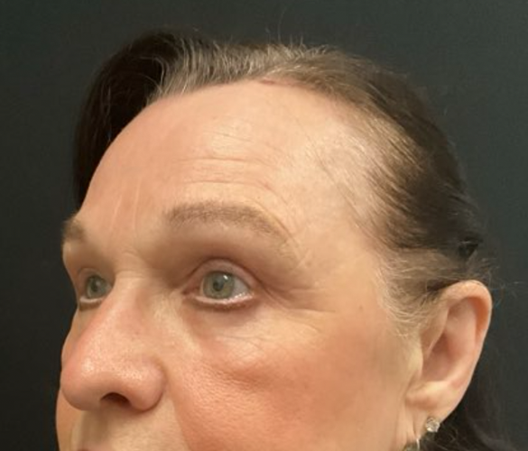 Patient is shown 6 weeks after surgery – Forehead Reduction Brow Lift and Right Sided Upper Blepharoplasty