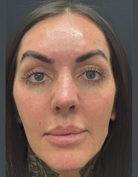 30 year old woman shown 5 weeks after revision rhinoplasty