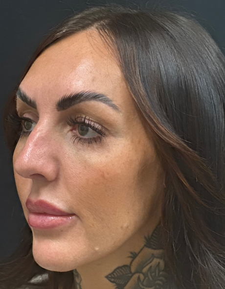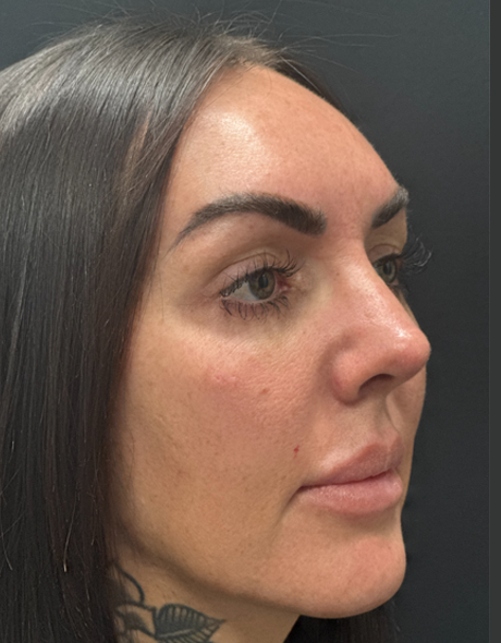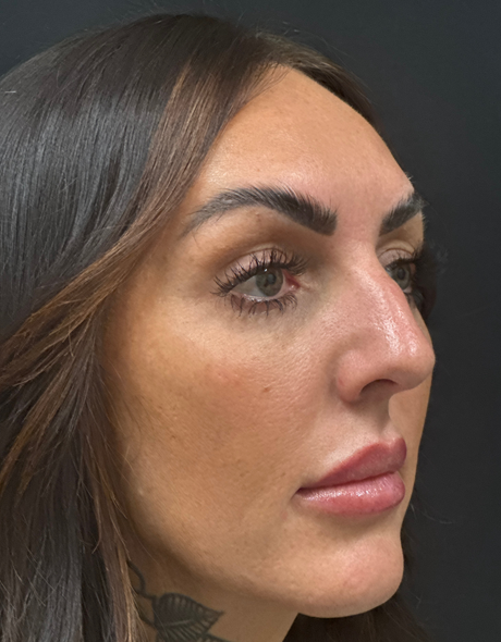 38 year old woman shown 6 months after closed rhinoplasty. Improvement of the dorsal hump and tip projection were achieved.