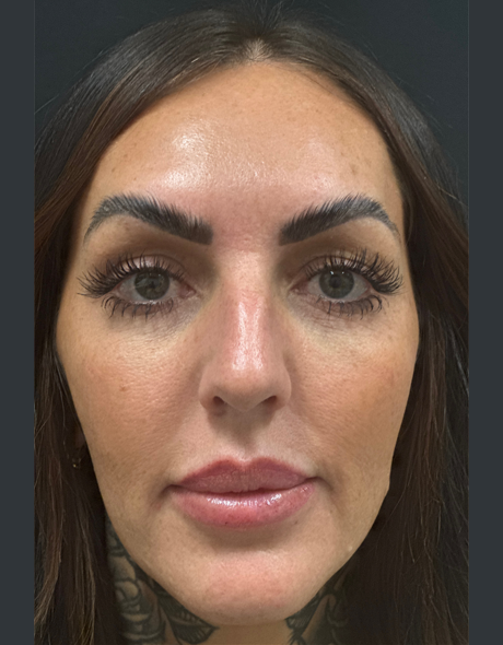 25 year old woman shown 5 weeks after rhinoplasty which included dorsal hump reduction and tip refinement