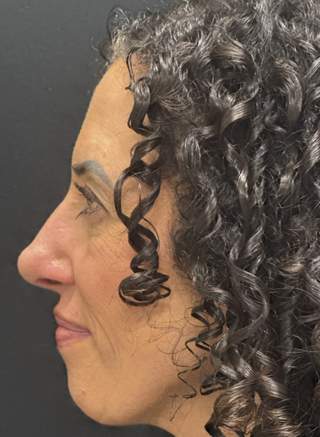 59 year old woman shown 3 months after rhinoplasty and maxillary augmentation with Goretex implant.
